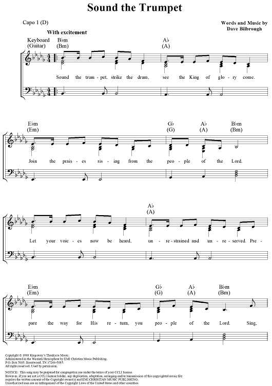 Digital Sheet Music for Sound the Trumpet, Strike the Drum by Dave Bilbrough scored for Piano/Vocal/Chords; id:283114