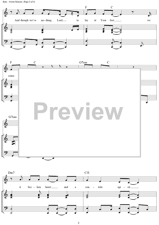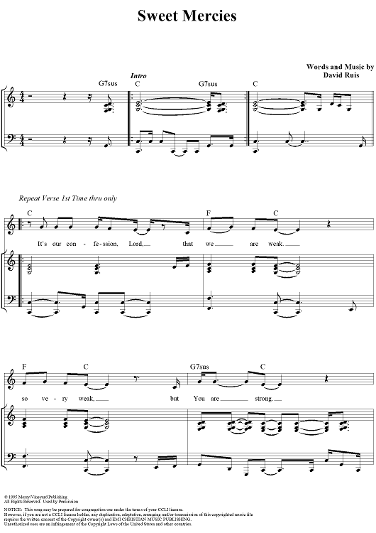 Digital Sheet Music for Sweet Mercies by David Ruis scored for Piano/Vocal/Chords; id:110880