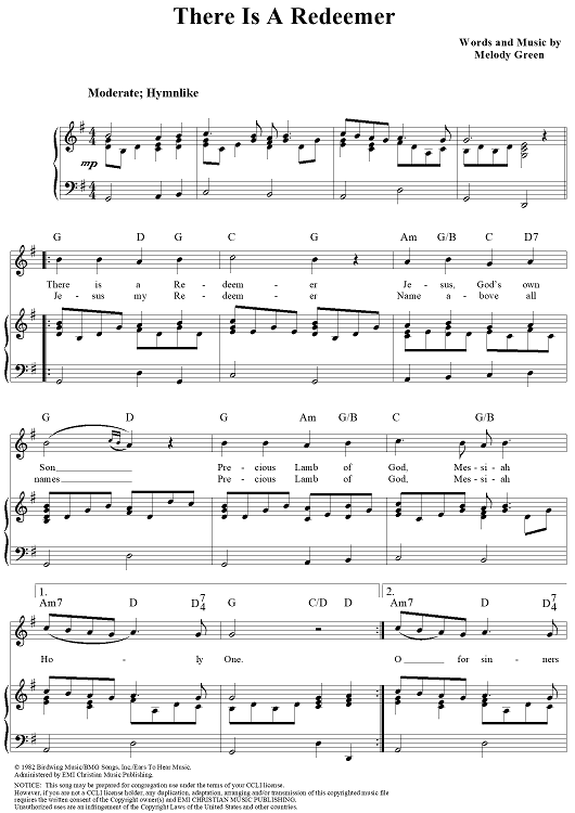 Digital Sheet Music for There Is A Redeemer by Keith Green, Melody Green scored for Piano/Vocal/Chords; id:111120