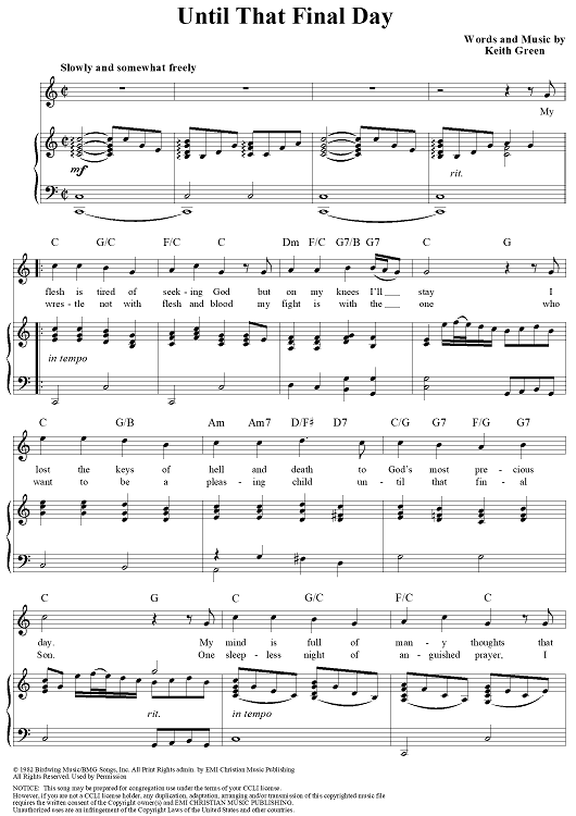 Digital Sheet Music for Until That Final Day by Keith Green scored for Piano/Vocal/Chords; id:111340