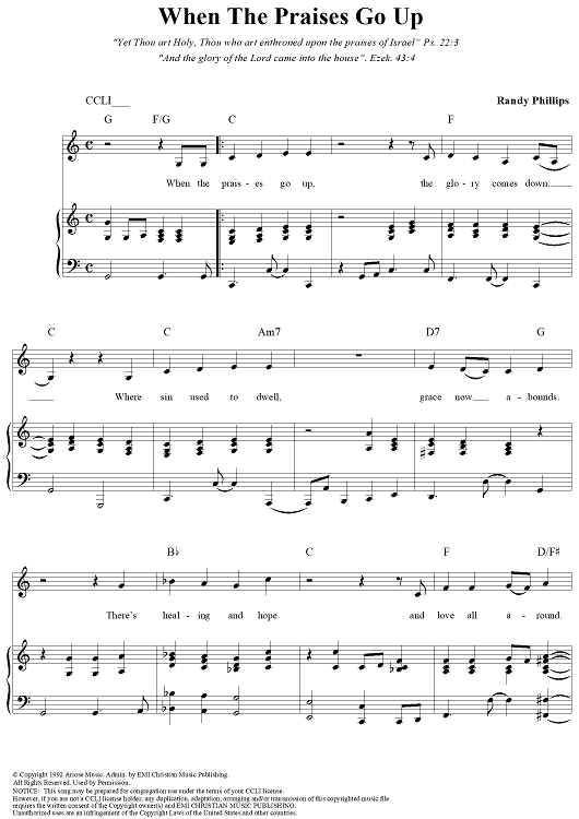 Digital Sheet Music for When the Praises Go Up by Randy Phillips scored for Piano/Vocal/Chords; id:111533