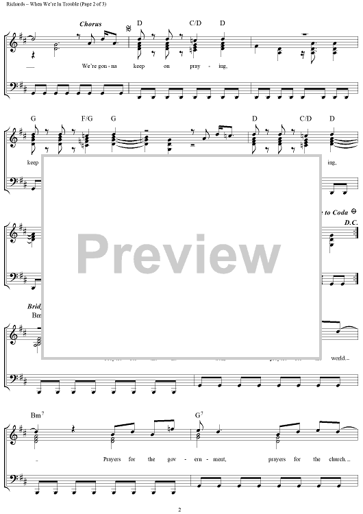 Digital Sheet Music for When We're In Trouble (Keep On Praying) by Noel Richards scored for Piano/Vocal/Chords; id:109985