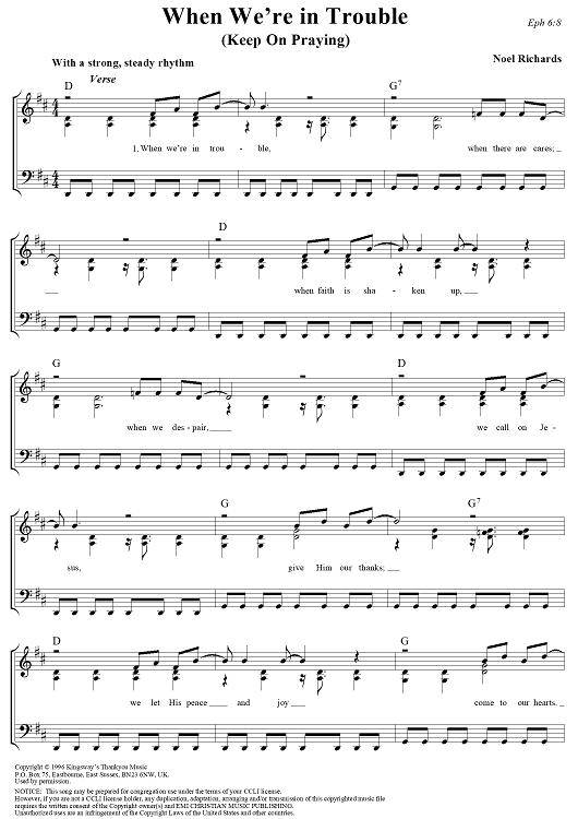 "When We're In Trouble (Keep On Praying)" Sheet Music by Noel Richards