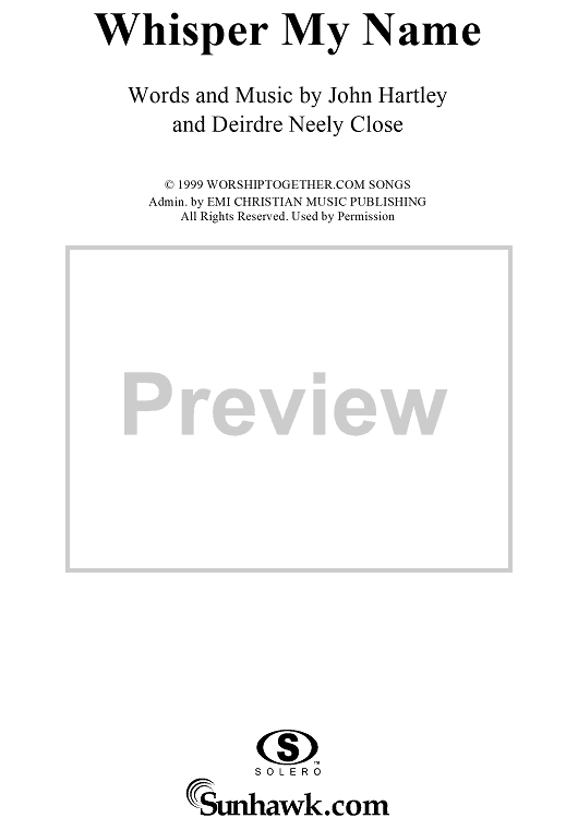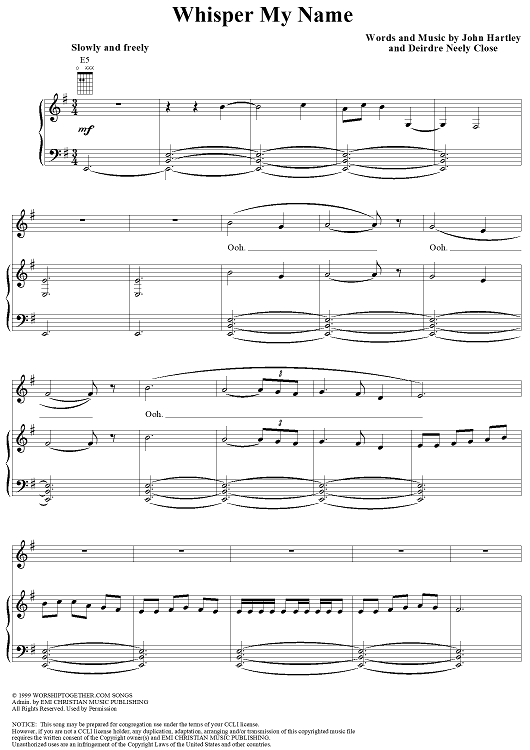 Digital Sheet Music for Whisper My Name by John Hartley, Jennifer Knapp, Deirdre Neely Close scored for Piano/Vocal/Chords; id:267309