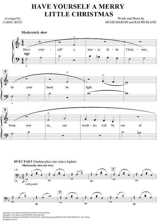 Digital Sheet Music for Have Yourself A Merry Little Christmas by Hugh Martin, Ralph Blane, Carol Matz scored for Piano; id:453428