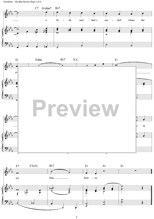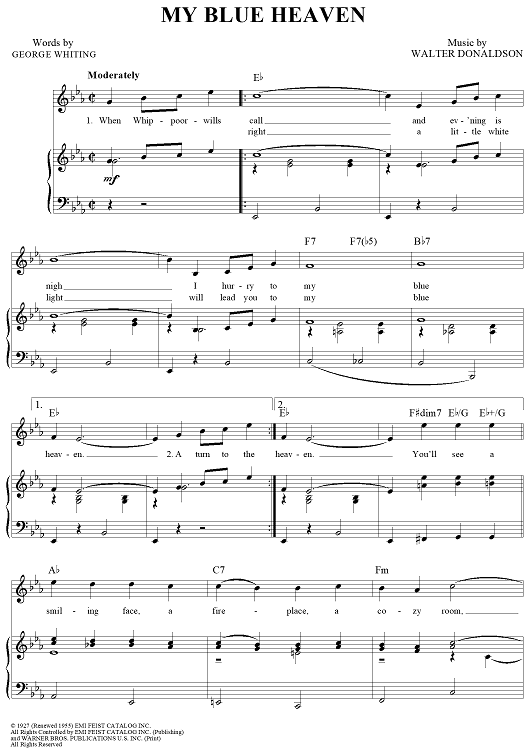 Digital Sheet Music for My Blue Heaven by Frank Sinatra, Walter Donaldson, George Whiting, Gene Austin scored for Piano/Vocal/Chords; id:111894