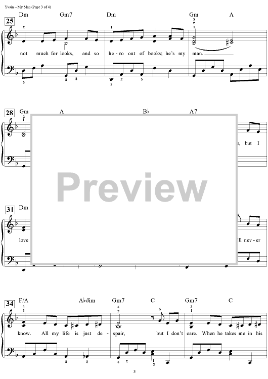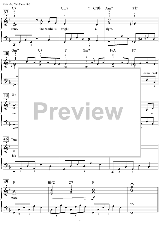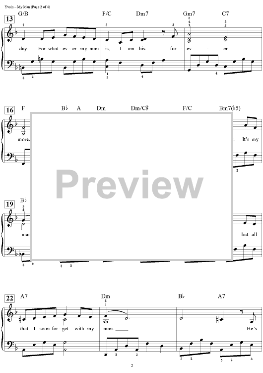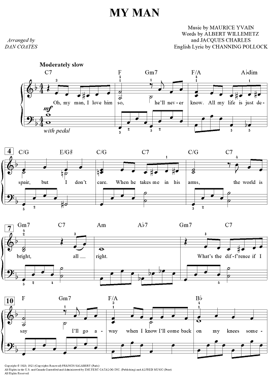 Digital Sheet Music for My Man by Dan Coates, Maurice Yvain, Jacques Charles, Albert Willemetz, Channing Pollock scored for Easy Piano/Vocal/Chords; id:450636
