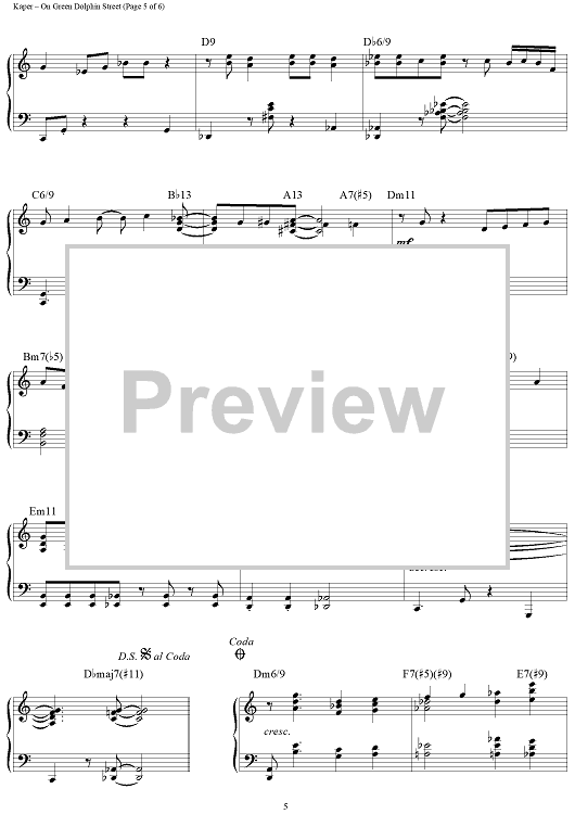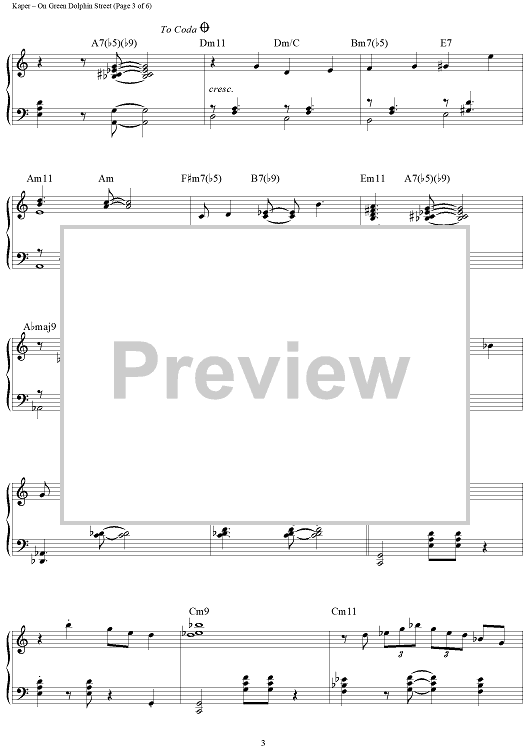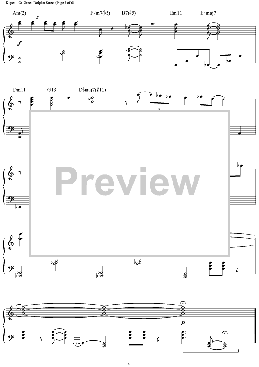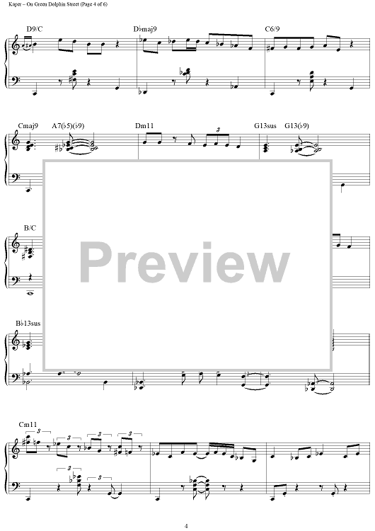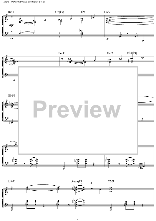 Digital Sheet Music for On Green Dolphin Street by Ned Washington, Bronislau Kaper, Brent Edstrom scored for Piano Solo; id:458719