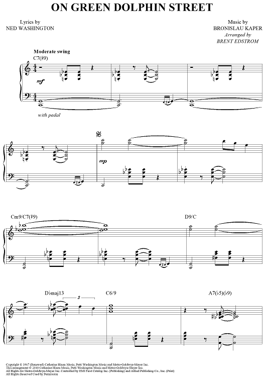 "On Green Dolphin Street" Sheet Music by Bronislau Kaper