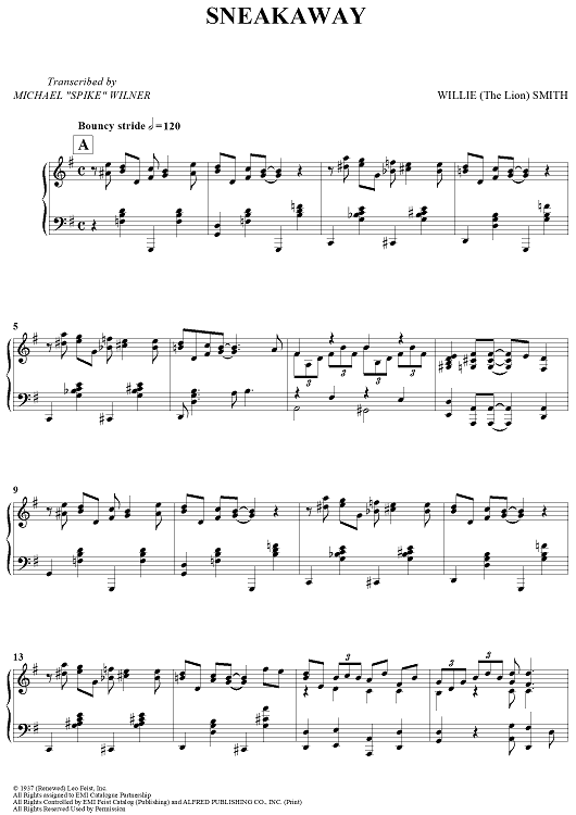 Digital Sheet Music for Sneakaway by Willie "The Lion" Smith, Michael "Spike" Wilner scored for Piano Solo; id:438198
