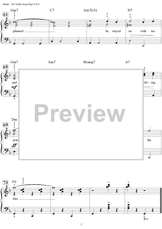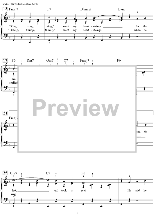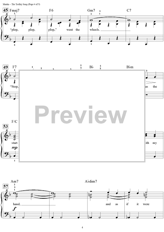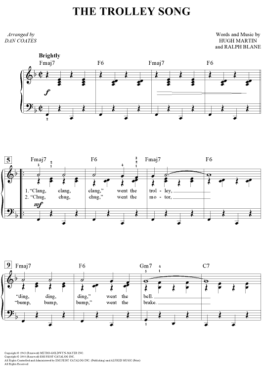 Digital Sheet Music for The Trolley Song by Dan Coates, Hugh Martin, Ralph Blane scored for Easy Piano/Vocal/Chords; id:451978