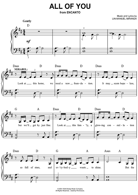 Digital Sheet Music for All Of You by Lin-Manuel Miranda scored for Easy Piano/Vocal/Chords; id:470586