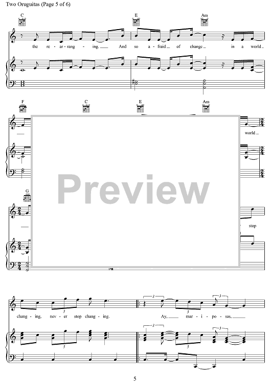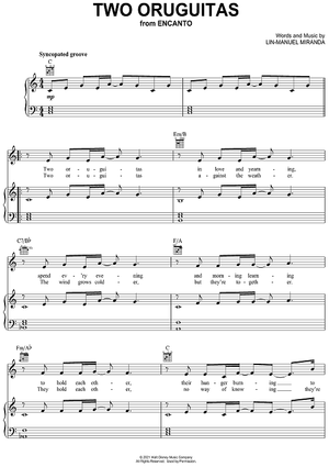 Digital Sheet Music for Two Oruguitas by Lin-Manuel Miranda scored for Piano/Vocal/Chords; id:470582