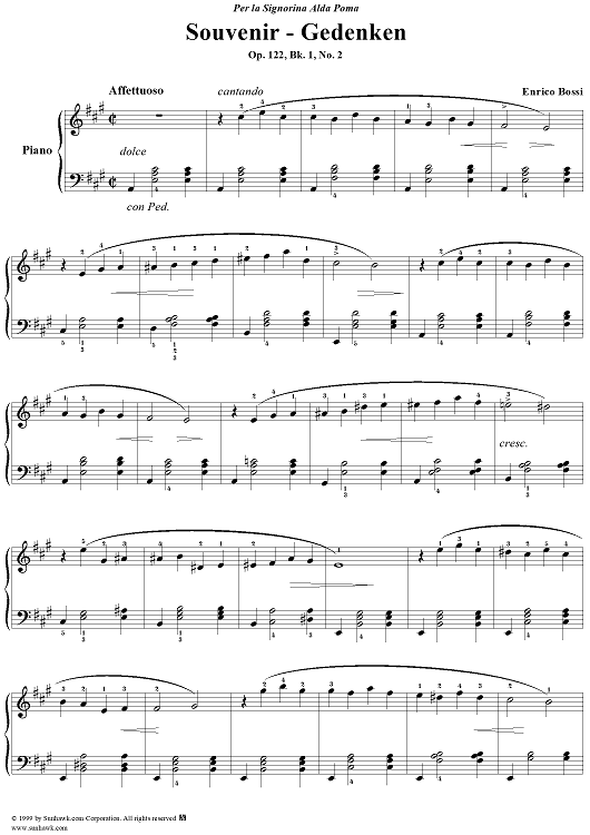 Digital Sheet Music for Album pour la Jeunesse, op. 122, bk. 1, no. 2, Souvenir - Gedenken by Enrico Bossi scored for Piano Solo; id:275252