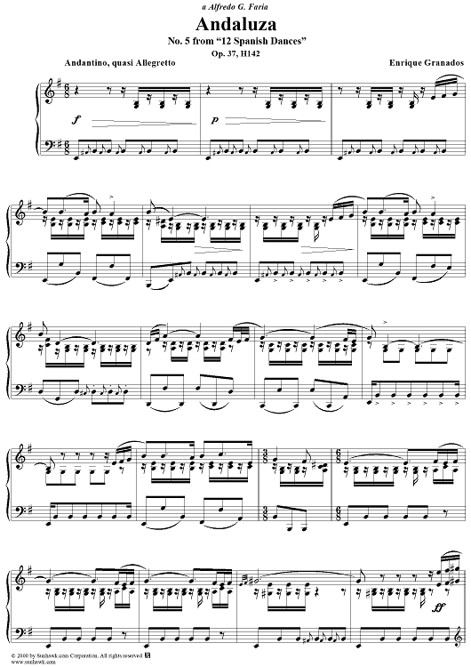 Digital Sheet Music for No. 5: Andaluza (Playera) by Enrique Granados scored for Piano Solo; id:235998