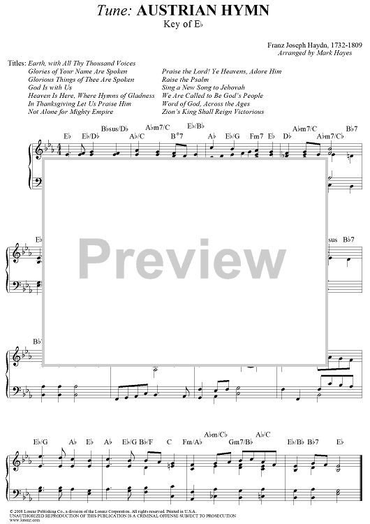 Digital Sheet Music for Austrian Hymn by , Franz Joseph Haydn, Mark Hayes scored for Piano Solo; id:436635