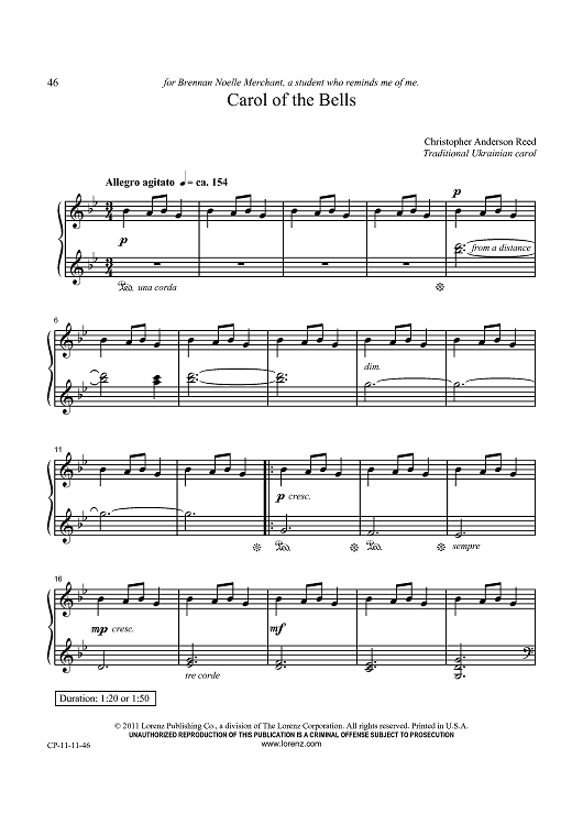 Digital Sheet Music for Carol of the Bells by Traditional Ukrainian Carol, Christopher Anderson Reed scored for Piano Solo; id:434588