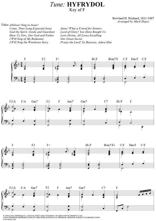 Digital Sheet Music for Hyfrydol by , Mark Hayes, Rowland Hugh Prichard scored for Piano Solo; id:436651