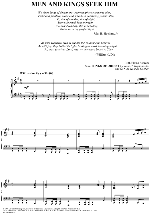 Digital Sheet Music for Men and Kings Seek Him by Various, Ruth Elaine Schram scored for Piano Solo; id:435249