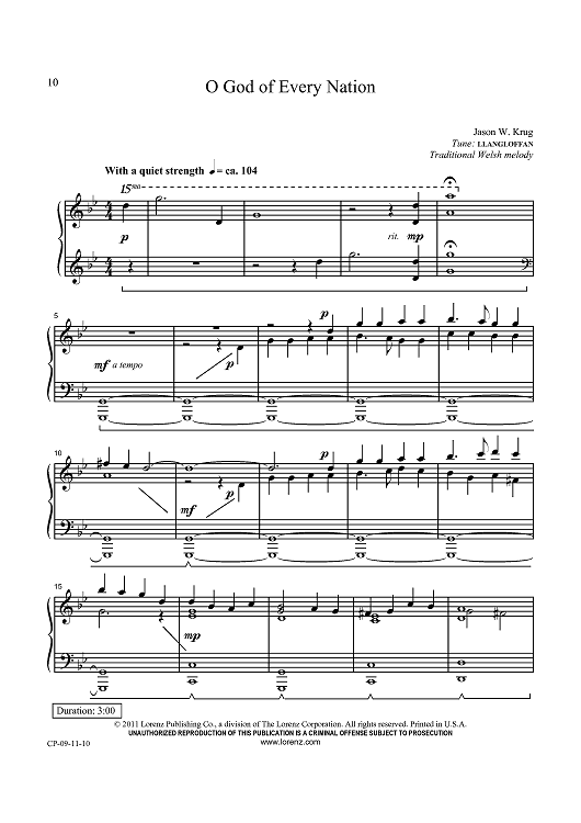 Digital Sheet Music for O God of Every Nation by Traditional Welsh Melody, Jason W. Krug scored for Piano Solo; id:434596