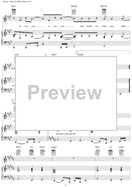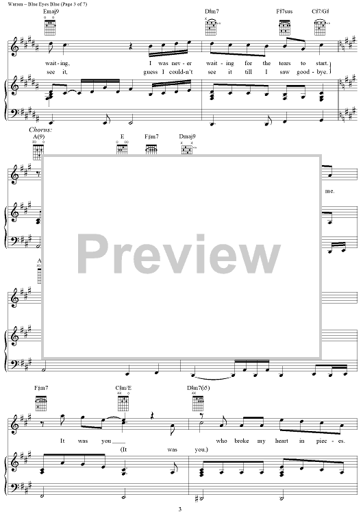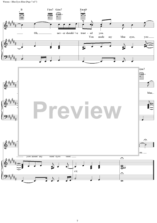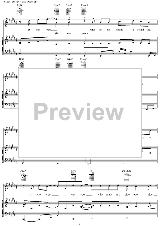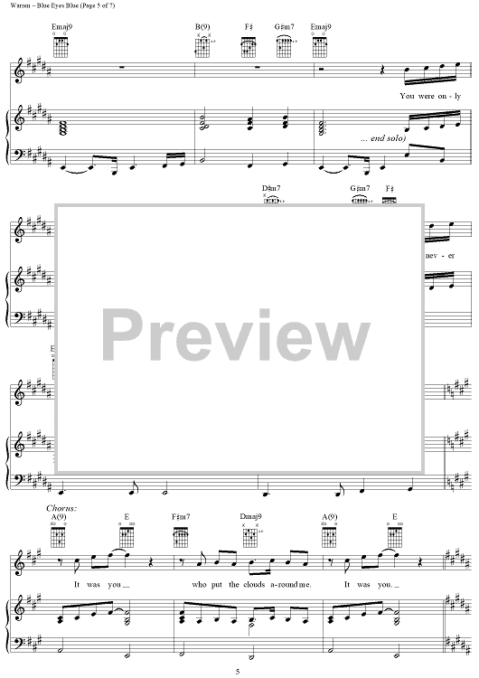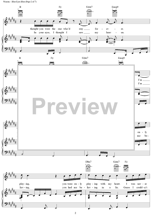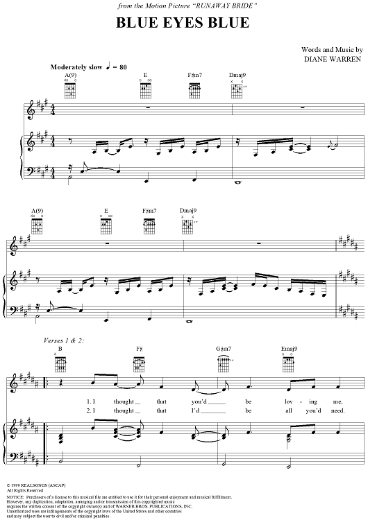 Digital Sheet Music for Blue Eyes Blue by Diane Warren, Eric Clapton scored for Piano/Vocal/Chords; id:132899