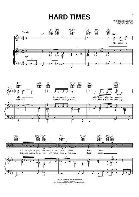 Digital Sheet Music for Hard Times by Eric Clapton, Ray Charles scored for Piano/Vocal/Chords; id:384805