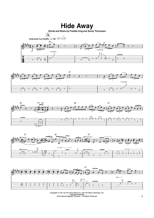 Digital Sheet Music for Hide Away by Eric Clapton, Bluesbreakers, Freddie King, Sonny Thompson scored for Guitar Tab; id:368924