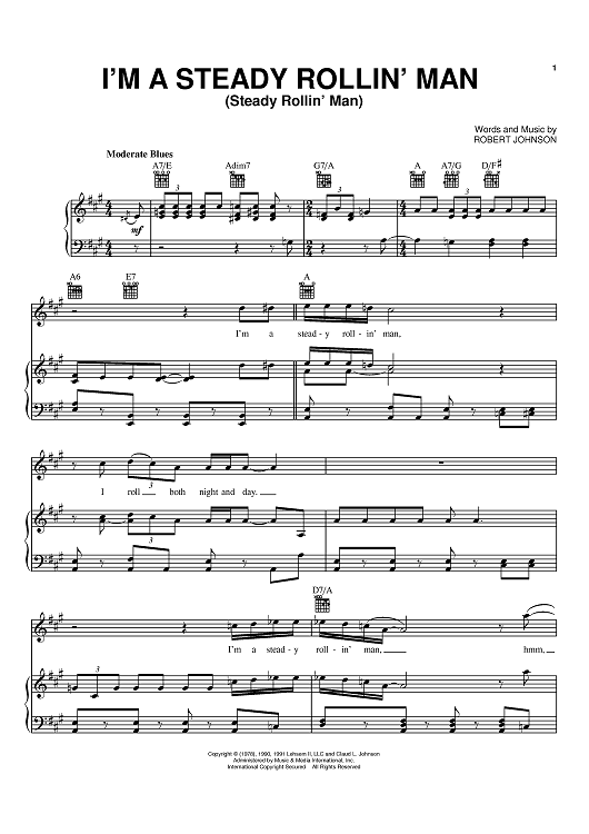 Digital Sheet Music for I'm A Steady Rollin' Man (Steady Rollin' Man) by Eric Clapton, Robert Johnson scored for Piano/Vocal/Chords; id:372326