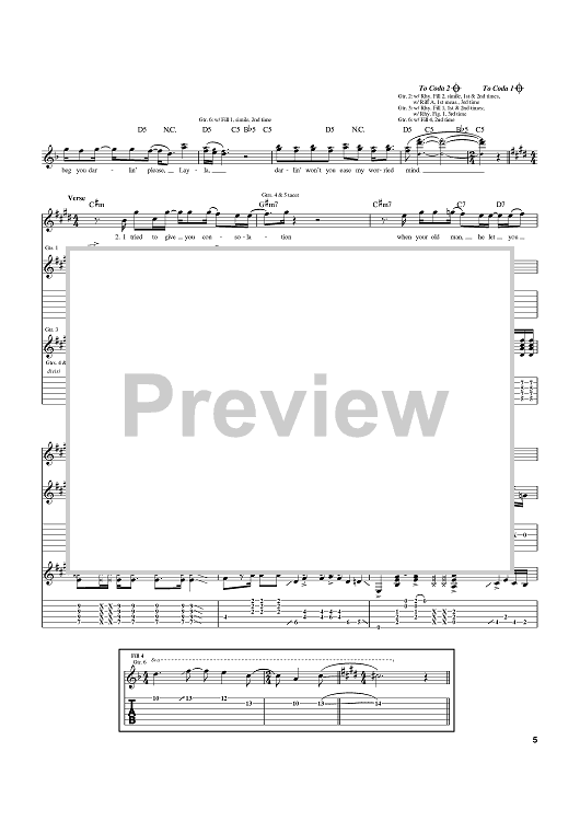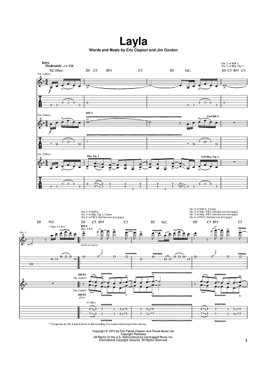 Digital Sheet Music for Layla by Eric Clapton, Jim Gordon, Derek and the Dominos scored for Guitar Tab; id:368950