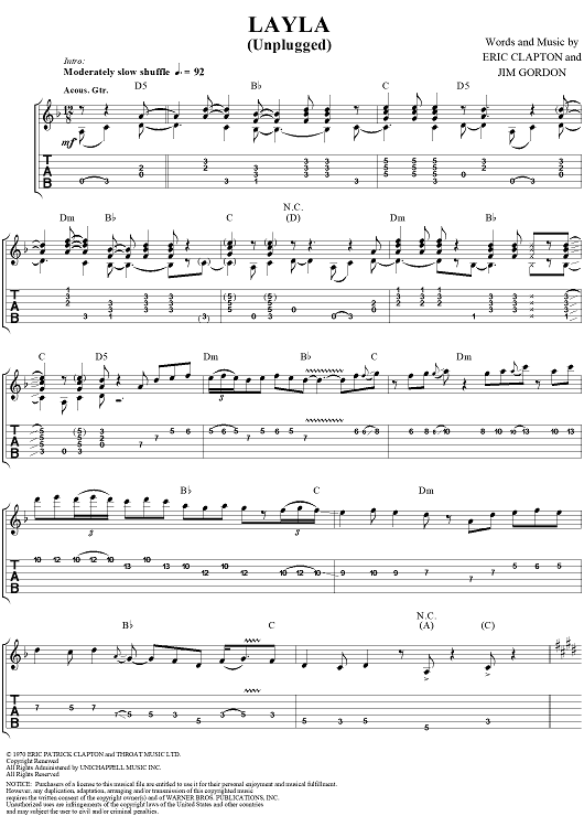 "Layla (Unplugged)" Sheet Music by Eric Clapton