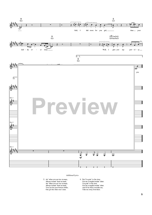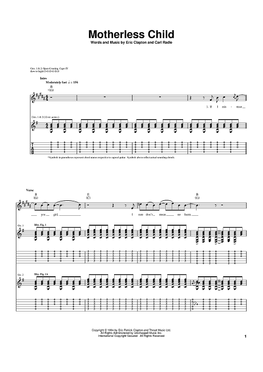 Digital Sheet Music for Motherless Child by Eric Clapton, Carl Radle scored for Guitar Tab; id:402171