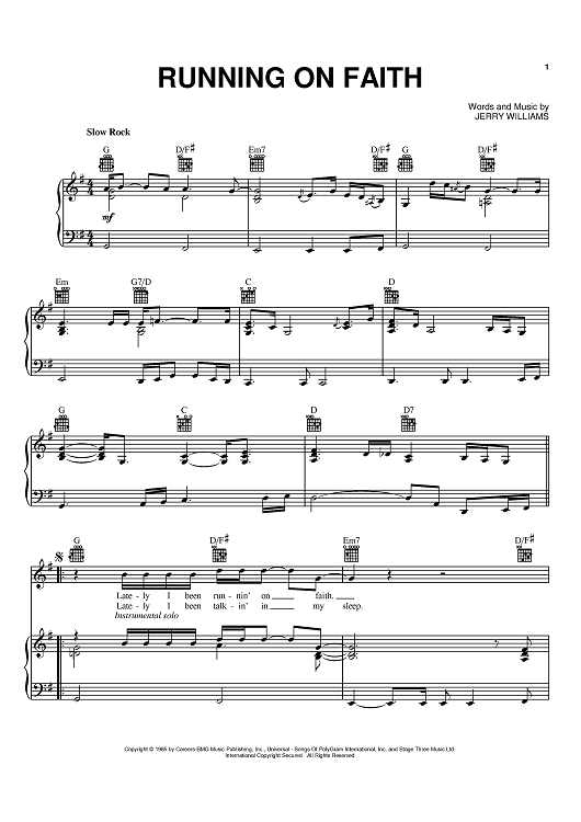 Digital Sheet Music for Running On Faith by Eric Clapton, Jerry Lynn Williams, Bernadette Peters scored for Piano/Vocal/Chords; id:373318