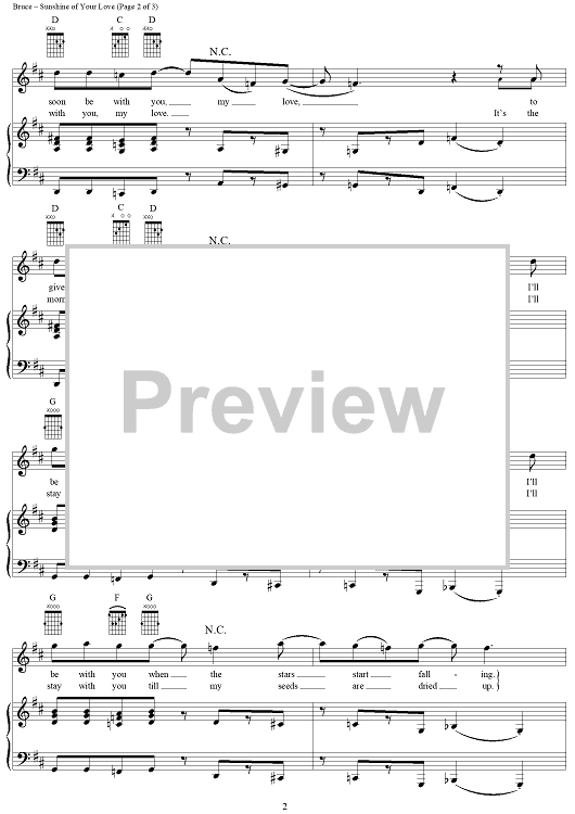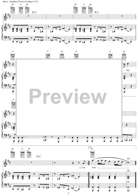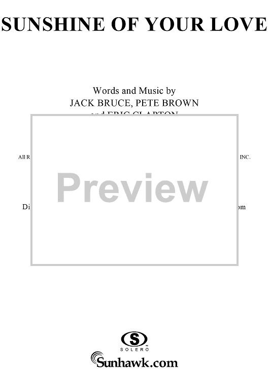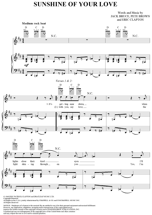Digital Sheet Music for Sunshine of Your Love by Eric Clapton, Cream, Pete Brown, Jack Bruce scored for Piano/Vocal/Chords; id:287229