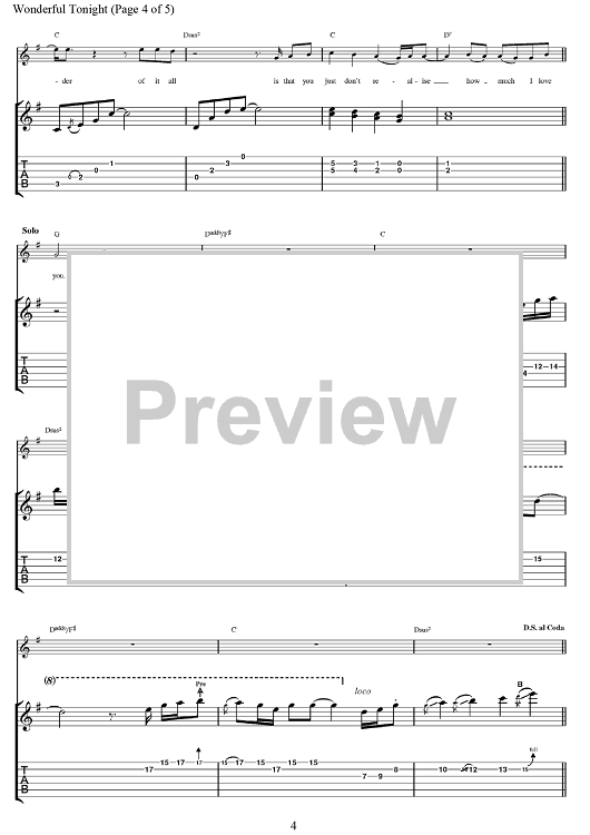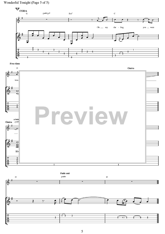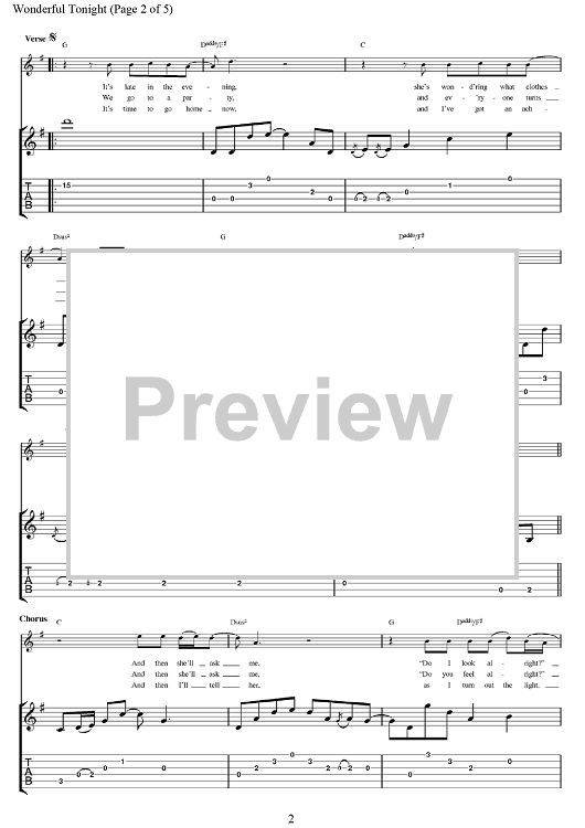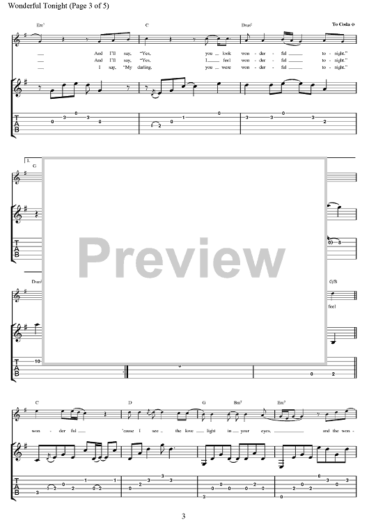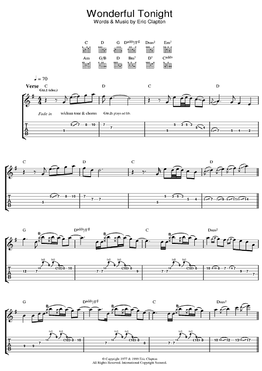 Digital Sheet Music for Wonderful Tonight by Eric Clapton, Don Williams, Michael Buble, David Kersh, Butch Baker scored for Guitar Tab; id:375687