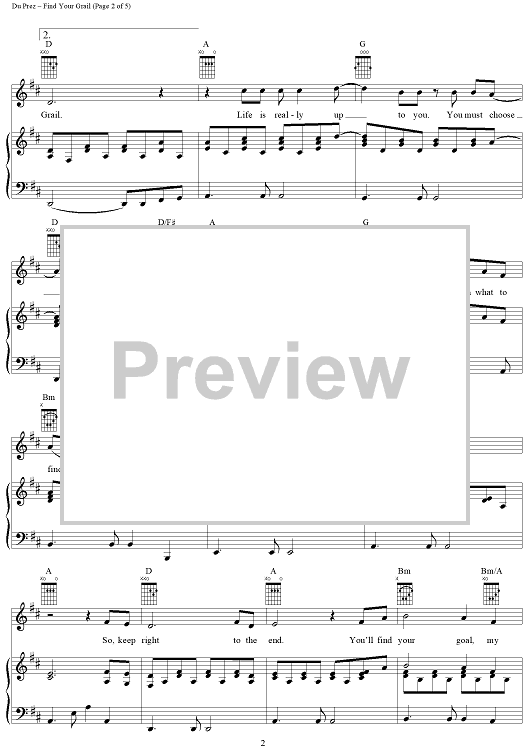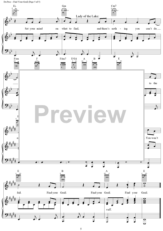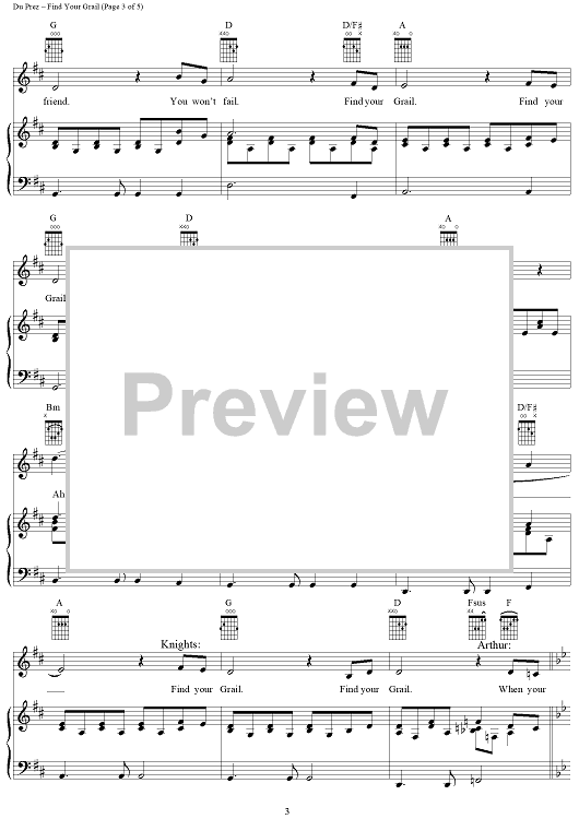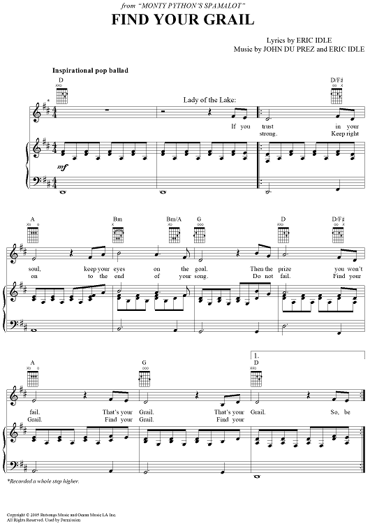 Digital Sheet Music for Find Your Grail by Eric Idle, John Du Prez scored for Piano/Vocal/Chords; id:385965
