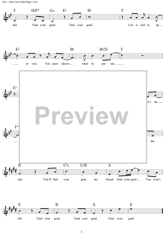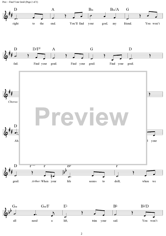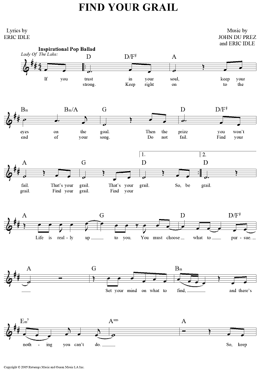 Digital Sheet Music for Find Your Grail by Eric Idle, John Du Prez scored for Lead Sheet; id:447298