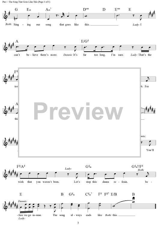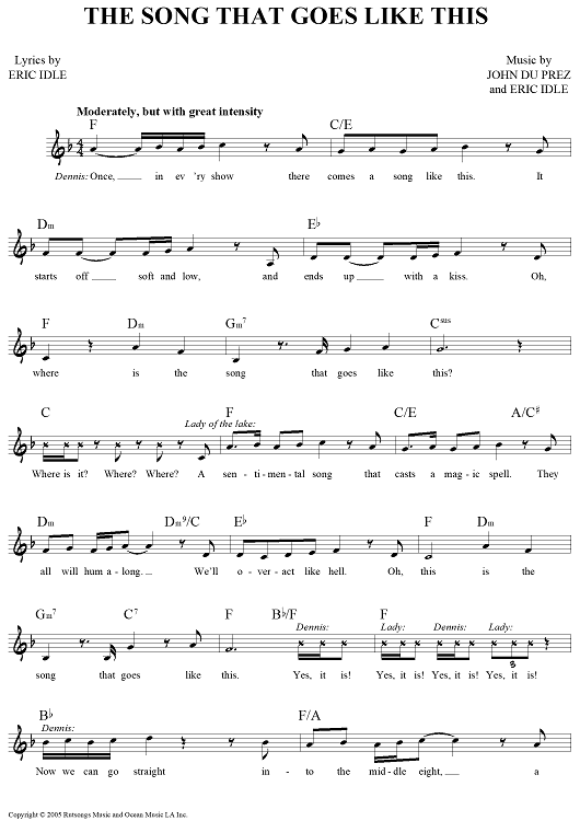 Digital Sheet Music for The Song That Goes Like This by Eric Idle, John Du Prez scored for Lead Sheet; id:447301