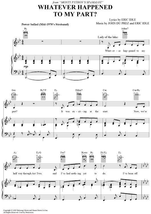 Digital Sheet Music for Whatever Happened to My Part? by Eric Idle, John Du Prez scored for Piano/Vocal/Chords; id:385968