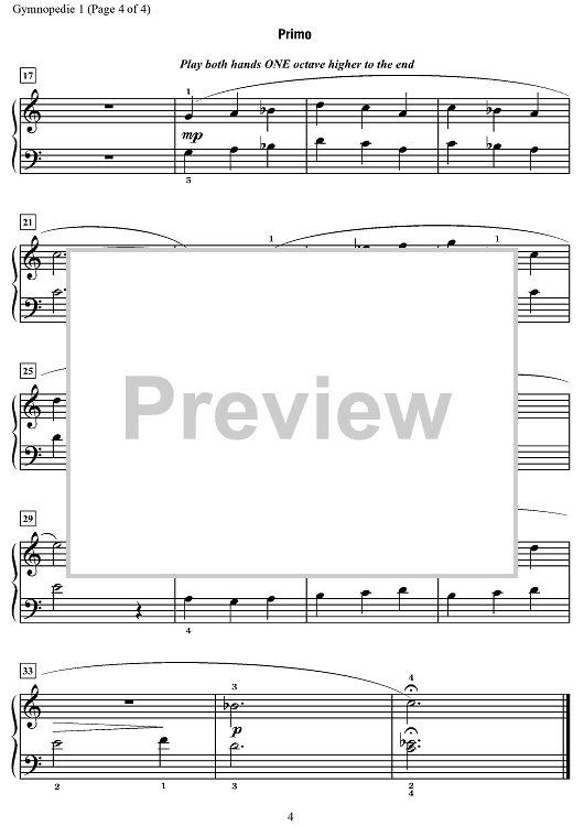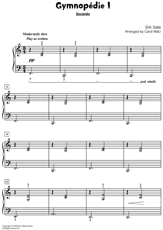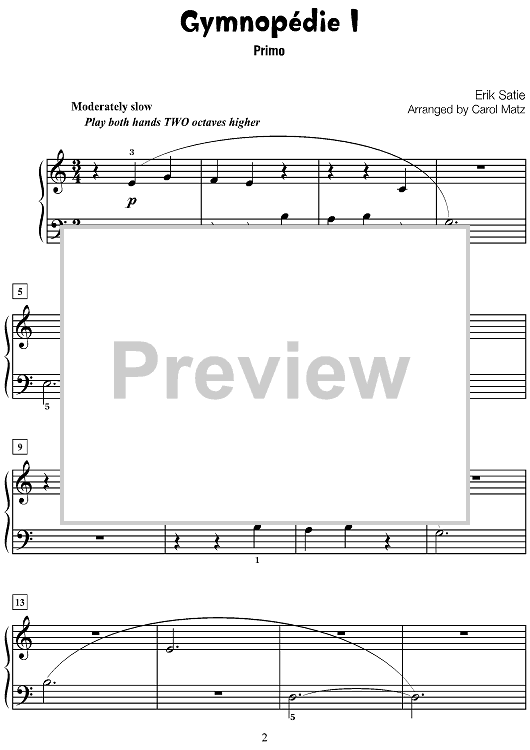 Digital Sheet Music for Gymnopédie I by Carol Matz, Erik Satie scored for 1 Piano, 4 Hands; id:496867