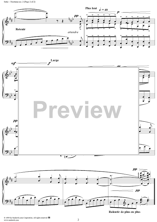 Digital Sheet Music for Nocturne no. 2 by Erik Satie scored for Piano Solo; id:118215