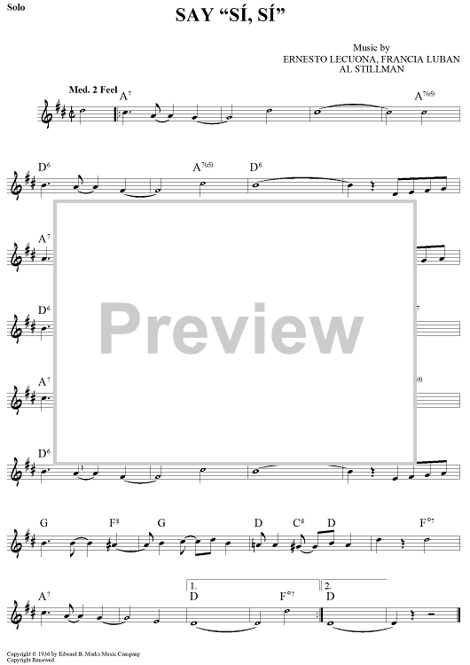 Digital Sheet Music for Say "Sí, Sí" by Al Stillman, Ernesto Lecuona, Francia Luban scored for Lead Sheet; id:456796
