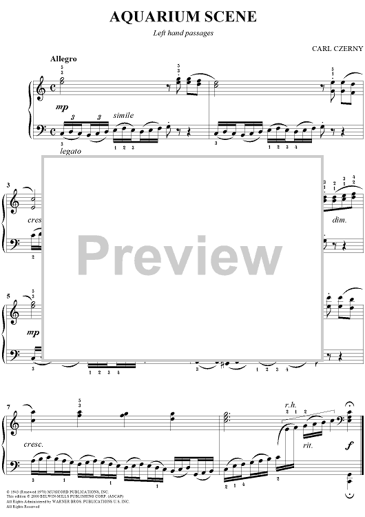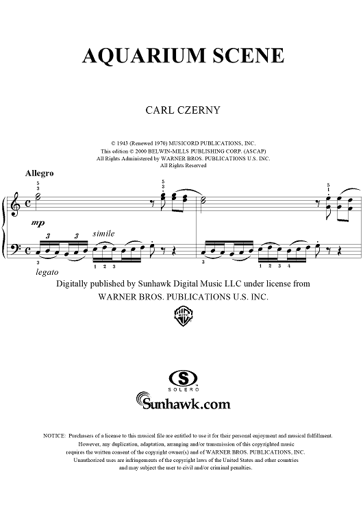 Digital Sheet Music for Aquarium Scene by Carl Czerny scored for Easy Piano; id:295695
