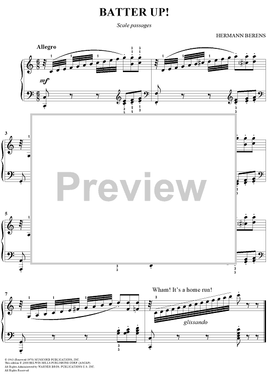 Digital Sheet Music for Batter Up! by Hermann Berens scored for Easy Piano; id:295701