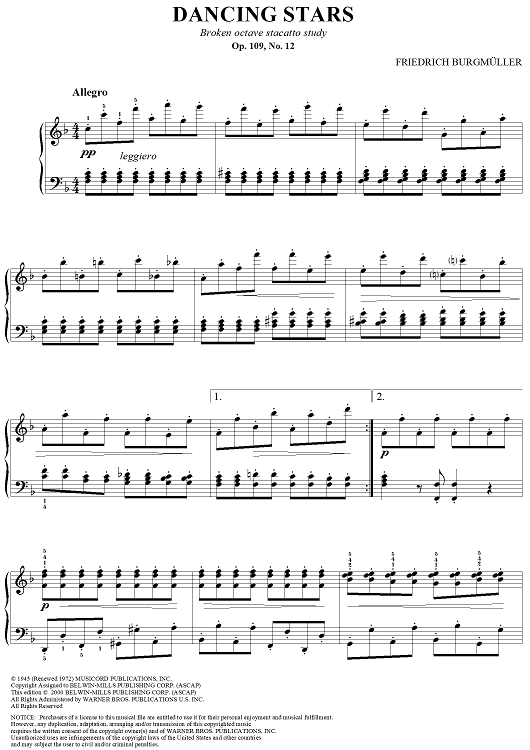 Digital Sheet Music for Dancing Stars, Op. 109, No. 12 by Friedrich Burgmüller scored for Piano Solo; id:295883