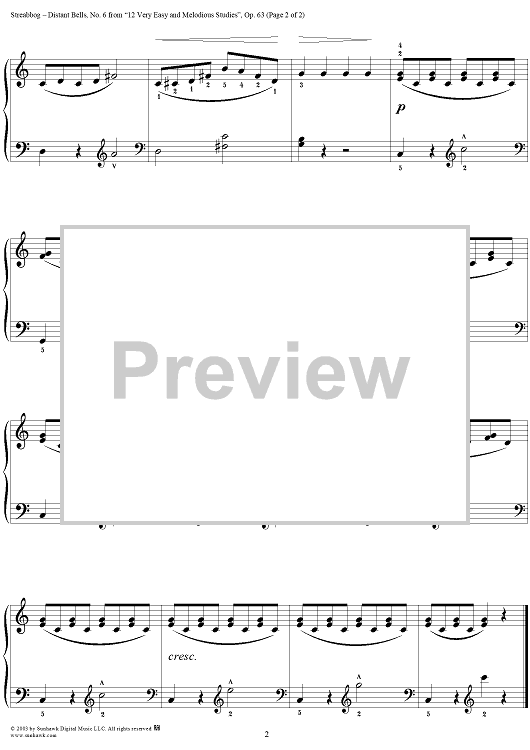 Digital Sheet Music for Distant Bells, Op. 63, No. 6, from "Twelve Very Easy and Melodious Studies" by Louis Streabbog scored for Piano Solo; id:294870