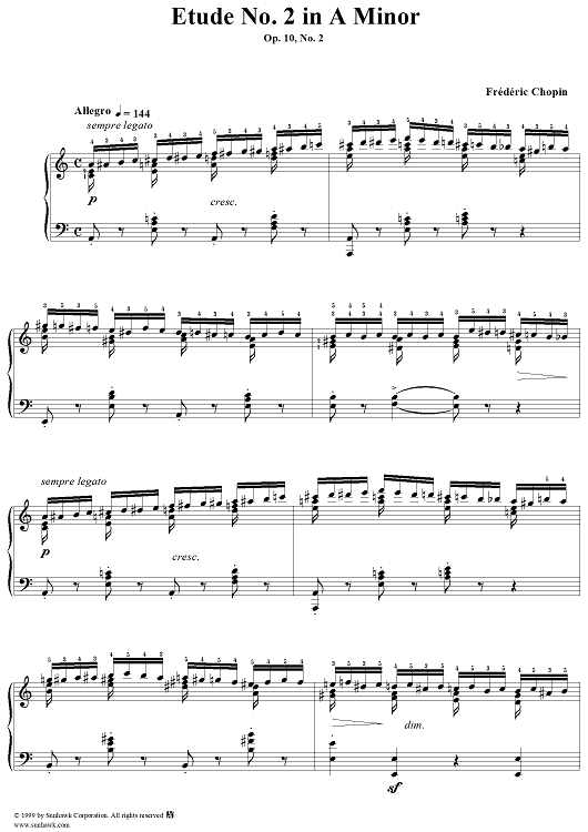 Digital Sheet Music for Etude Op. 10, No. 2 in A Minor by Frederic Chopin scored for Piano Solo; id:118109