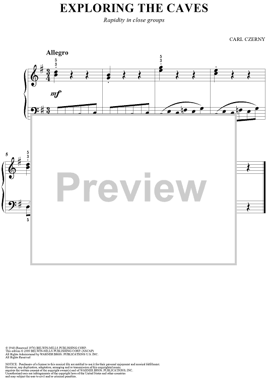 Digital Sheet Music for Exploring the Caves by Carl Czerny scored for Easy Piano; id:295842