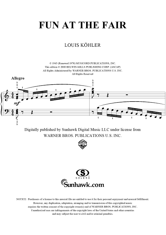 Digital Sheet Music for Fun at the Fair by Louis Köhler scored for Easy Piano; id:295690
