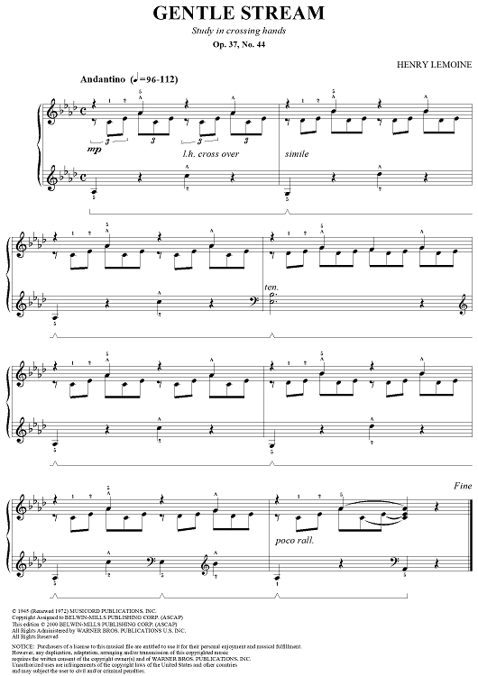 Digital Sheet Music for Gentle Stream, Op. 37, No. 44 by Henry Lemoine scored for Piano Solo; id:295879