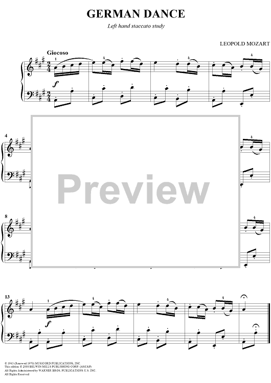 Digital Sheet Music for German Dance by Leopold Mozart scored for Easy Piano; id:295702